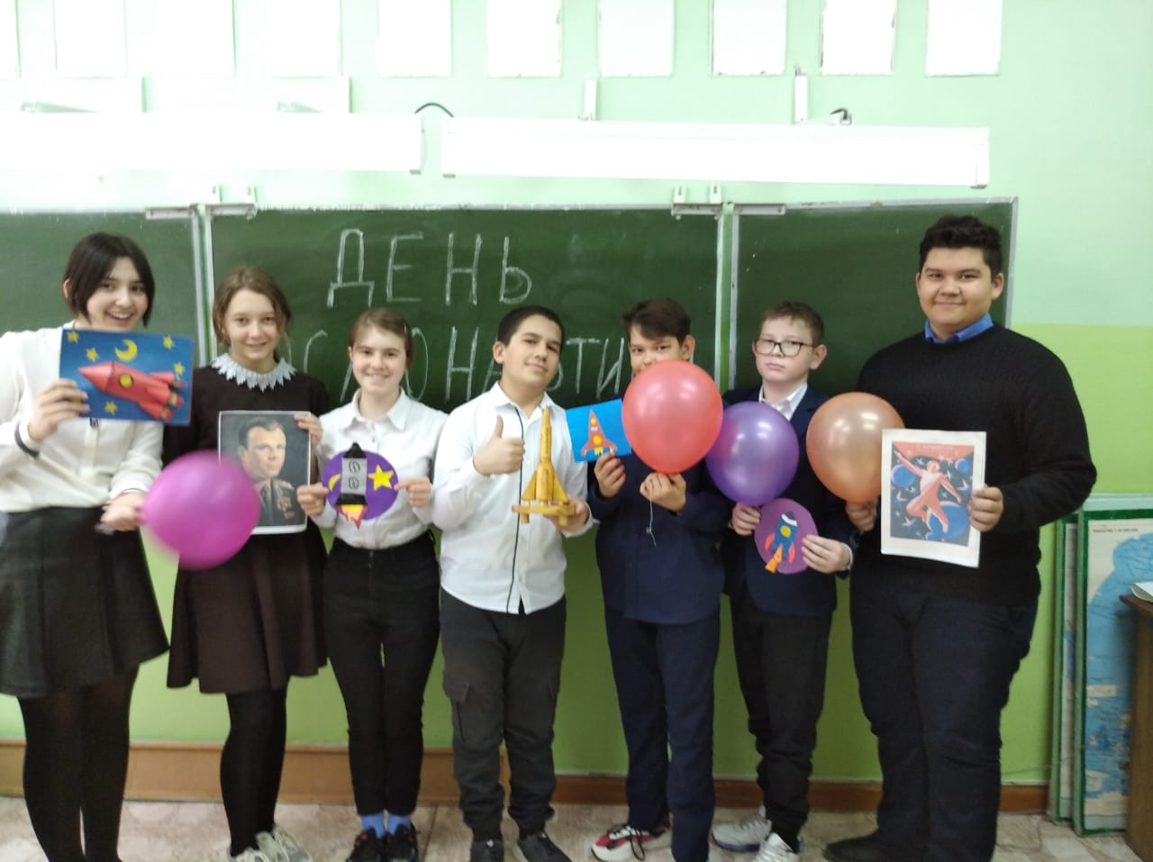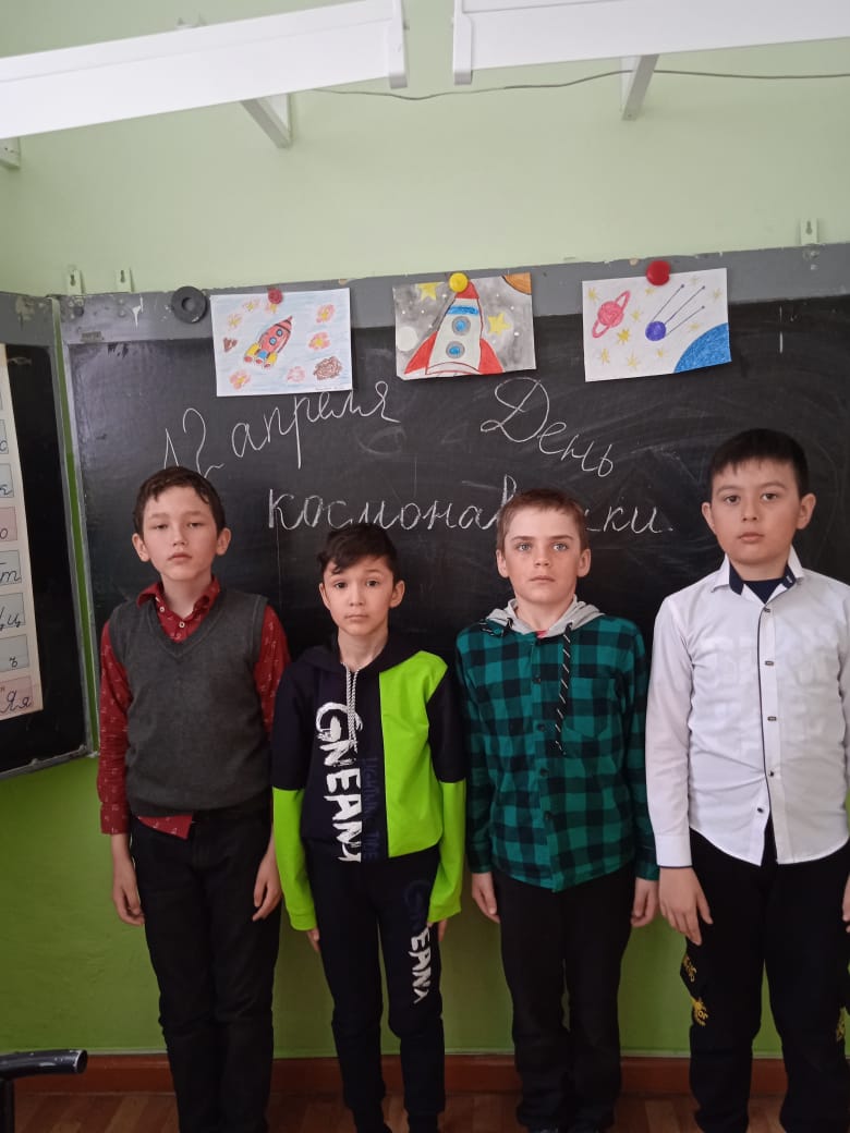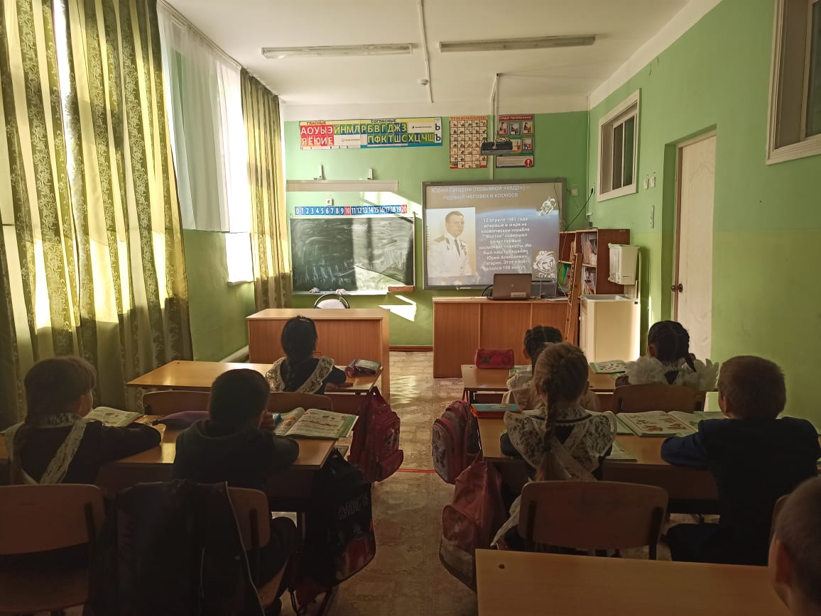 К этой знаменательной дате в нашей школе были проведены классные часы. Учащиеся начальных классов познакомились с иллюстрациями о планетах, космонавтах, спутниках, созвездиях. В беседах узнали о человеке, покорившем космическое пространство - Ю. Гагарине, первой женщине космонавте В. Терешковой, о том, как четвероногие друзья человека проложили путь к звездам, о планетах больших и маленьких, об их свойствах. Посмотрели видеоматериалы о Юрии Гагарине, узнали, о профессии космонавт, а также кто был первым изобретателем ракеты, послушали запись с голосом Юрия Гагарина, познакомились с космическими телами (метеоритами, кометами), конструировали модель орбитальной космической станции «Мир», раскрашивали космическую раскраску.