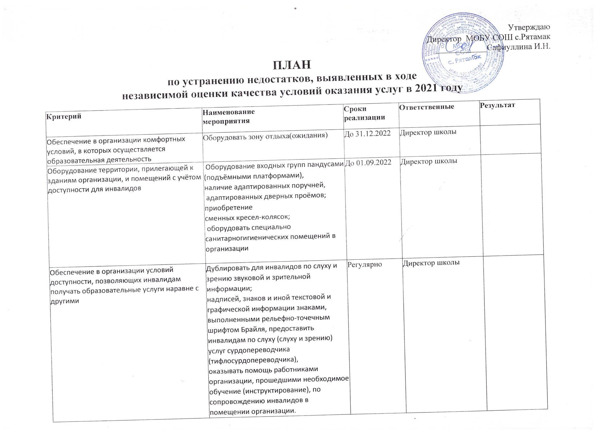 План по устранению недостатков